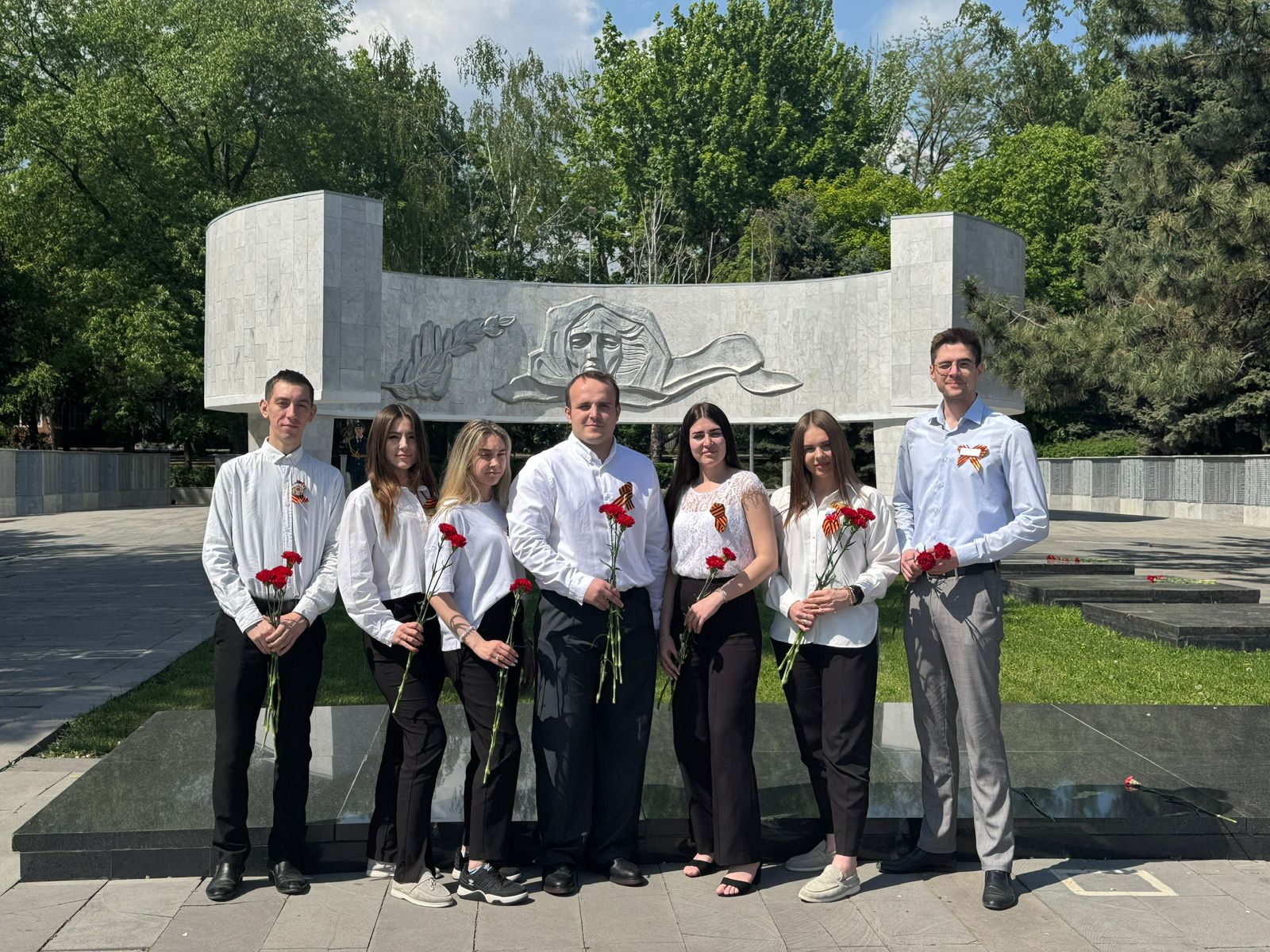 В канун Дня Победы сотрудники Пролетарского районного суда г. Ростова-на-Дону возложили цветы к мемориальному комплексу «Павшим воинам» в сквере имени Фрунзе, в память о тех, кто не вернулся с полей сражений Великой Отечественной войны, и почтили память погибших минутой молчания. |