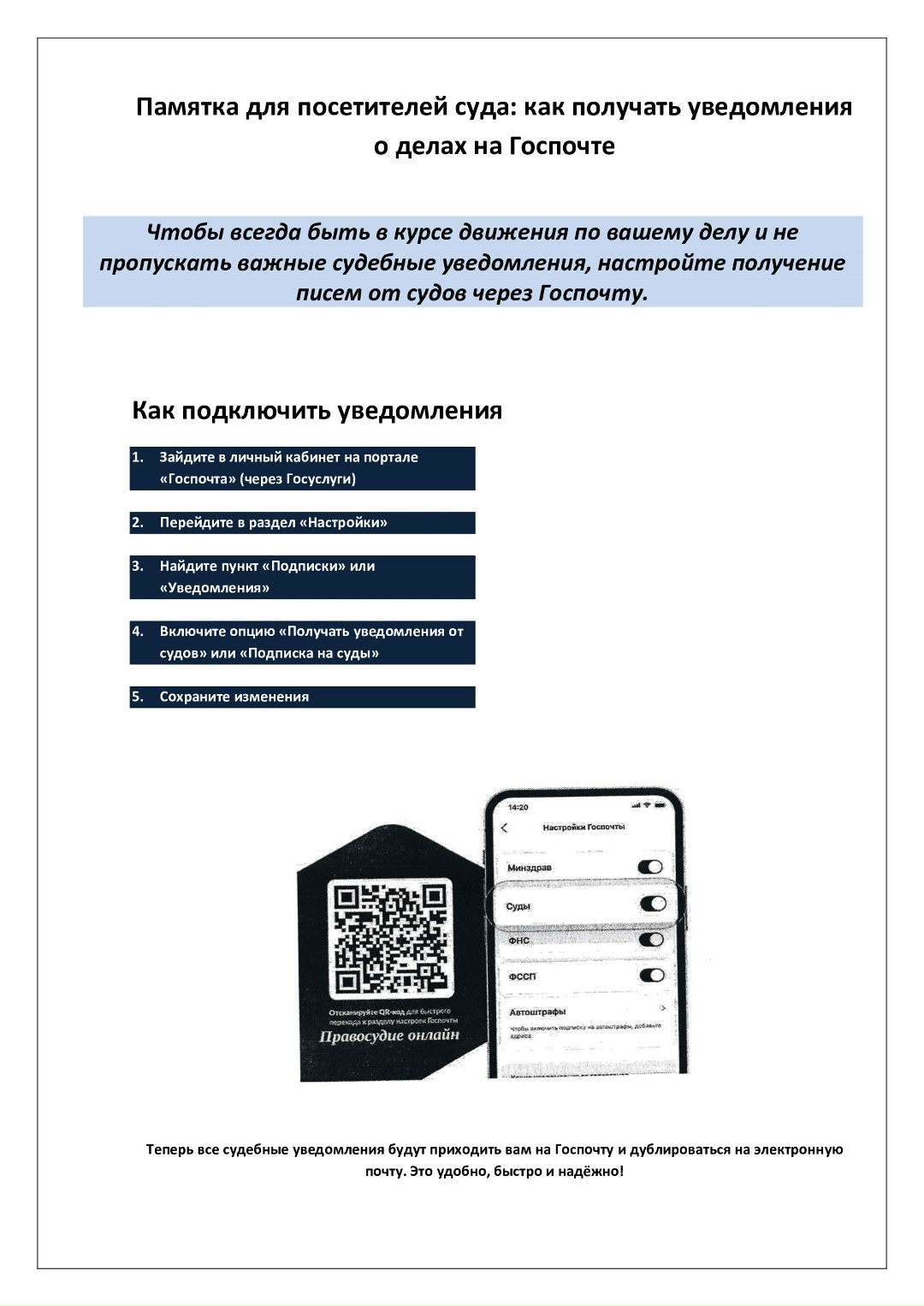 О преимуществах получения судебной корреспонденции в электронном виде через сервис ГЭПС,